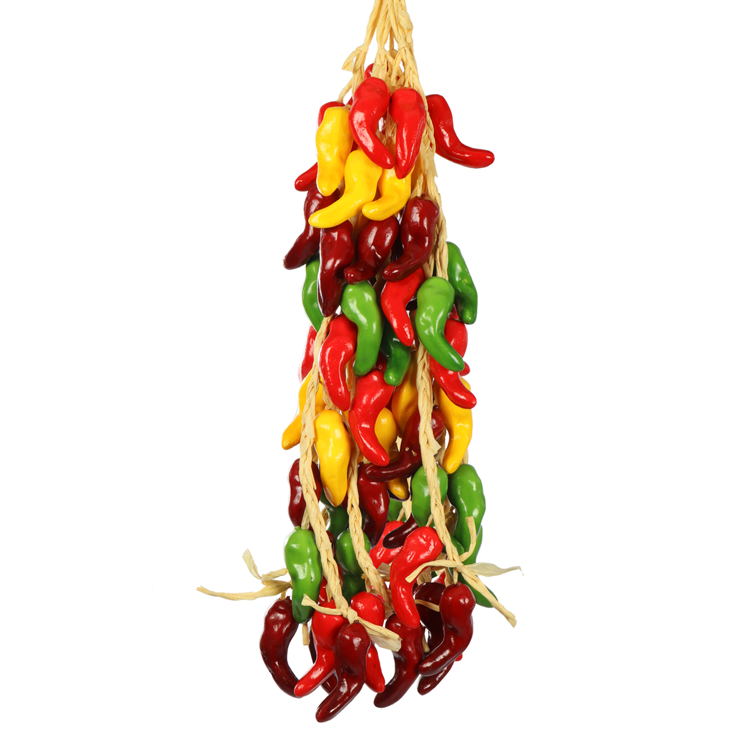 Kunst peperstreng mixkleur voor decoratie – 10 opvallende nep pepers (10cm) aan sizal koord | Decofoodshop.nl